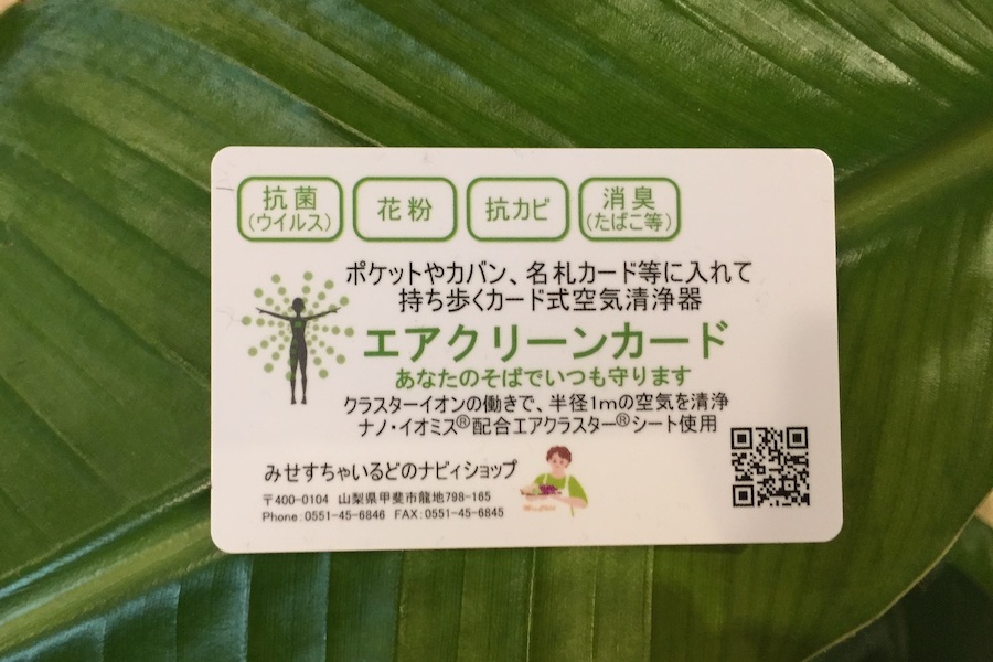 カード型空気清浄機!エアクリーンカードなるものを見つけました。