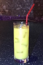 パイナップルジュースとレモンジュースがさわやかな味が新鮮です。クラッシュドアイスが詰まってしまったときのためにストローが2本添えられています。