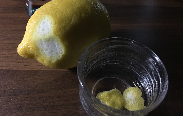 レモンの果皮構造は二層になっていて、表面の黄色い果皮、果皮の内壁にある白い部分の中果皮があります。このレモンの果皮はジンとマティーニには欠かせません。